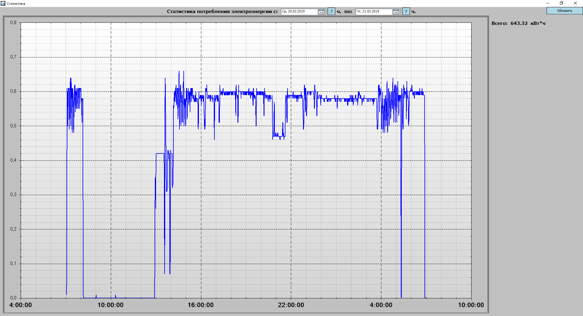 6) Расчет количества потребленных энергосред (электроэнергия, сжатый воздух, лед. вода, вода) и вывод информации в виде отчетов;